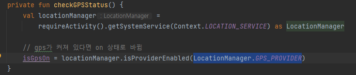 그래서 먼저, GPS 가 켜져있는지 확인하는 변수를 두었다.