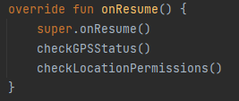 GPS 설정 액티비티에서 돌아왔을 떄, 다시 로직을 진행해야 하니, onResume 메소드에서 다시 한번 확인하고 좌표를 가져오는 메소드를 실행 시킨다.
