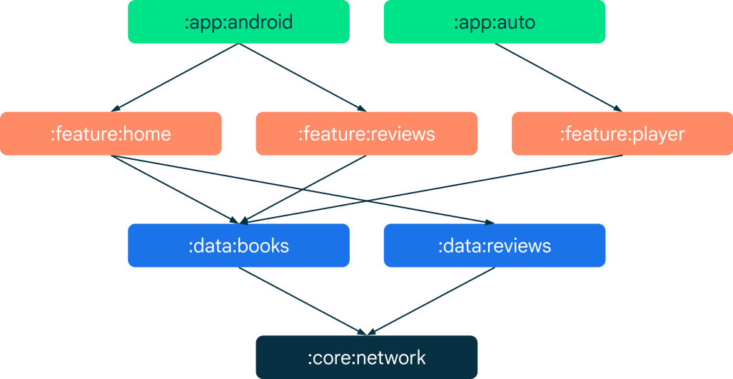 - 세분화가 됨 - 빌드 복잡성과 보일러플레이트 코드가 늘어남으로써 모든 모듈에서 일정량의 오버헤드가 발생한다. 또, 복잡한 빌드 구성으로 인해 모듈 간에 일관된 구성을 하기가 어렵습니다. 오버헤드가 확장성 개선에 해가 되는 경우 일부 모듈을 통합하는 것이 좋습니다.