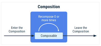 1. 화면을 그리는 시점에 해당 화면에 있는 컴포저블 함수를 파싱해서 메모리에 UI 트리 구조를 작성함. 이때 컴포저블 함수의 코드 블럭이 실행 됨 (코드를 메모리에 트리로 해석하는 과정을 Composition이라함)