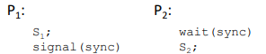 P2가 먼저 시작하더라도 wait에 의해서 P1이 끝나고 Sync을 넘겨 주어야만 P2가 실행이 된다.