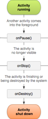 ex) 전화가 오거나, 사용자가 다른 활동으로 이동하거나, 기기 화면이 꺼지는 이벤트