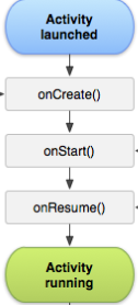 액티비티 생성 시 해당 메서드들이 순차적으로 호출되고 Actitivt는 running 상태가 된다.