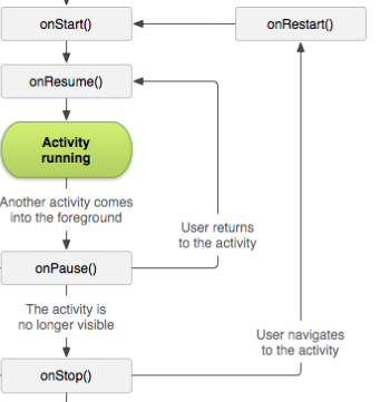 onStart() 메서드는 매우 빠르게 완료되고, ON_CREATED 상태와 마찬가지로 액티비티는 ON_START 상태에 머무르지 않습니다. 이 콜백이 완료되면 활동이 재개됨 상태에 들어가고, 시스템이 onResume() 메서드를 호출함
